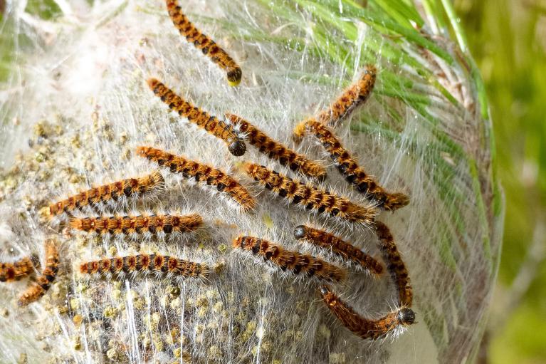 DroneBât traite par pulvérisation au drone les nids de chenilles processionnaires, luttant ainsi contre l'invasion de ce nuisible.